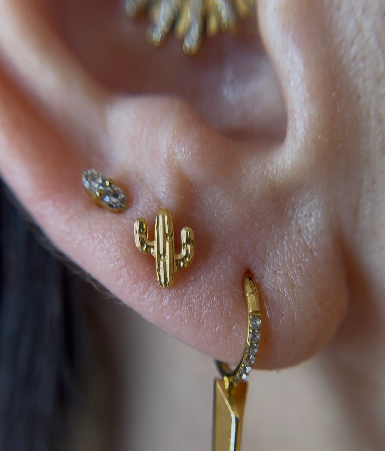 Saguaro cattura l'essenza del deserto con un design minimalista e raffinato. Disponibile in oro e argento, il cactus stilizzato rappresenta forza e resilienza, perfetto per chi apprezza gioielli con significato simbolico. Un accessorio sofisticato che trasforma il tuo look con un tocco di natura.